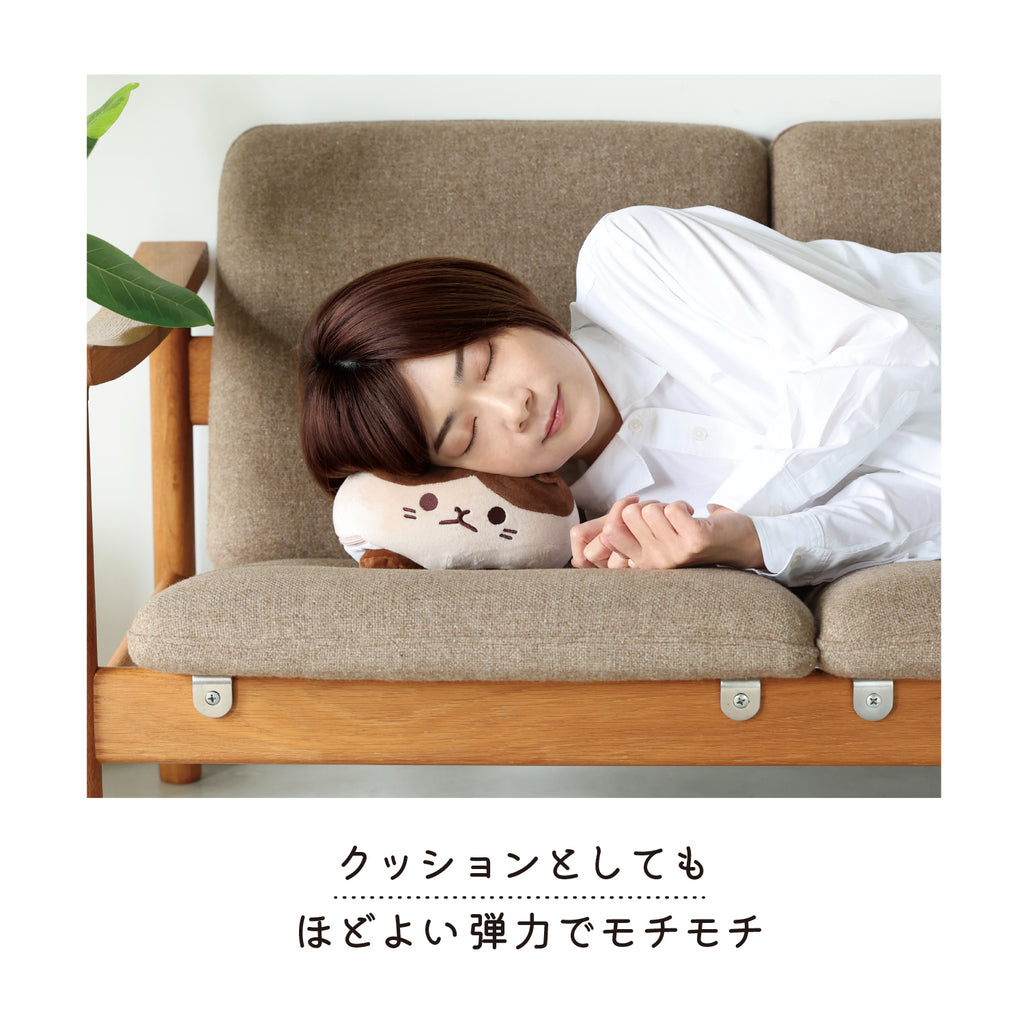 猫好きにはたまらない、癒し系フォルムと柔らかな表情。ナチュラルなベージュカラーで、リビングや寝室にそのまま置いてもインテリアを邪魔しません。使わないときはクッション代わりにもなる便利な2WAY仕様です。